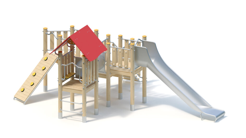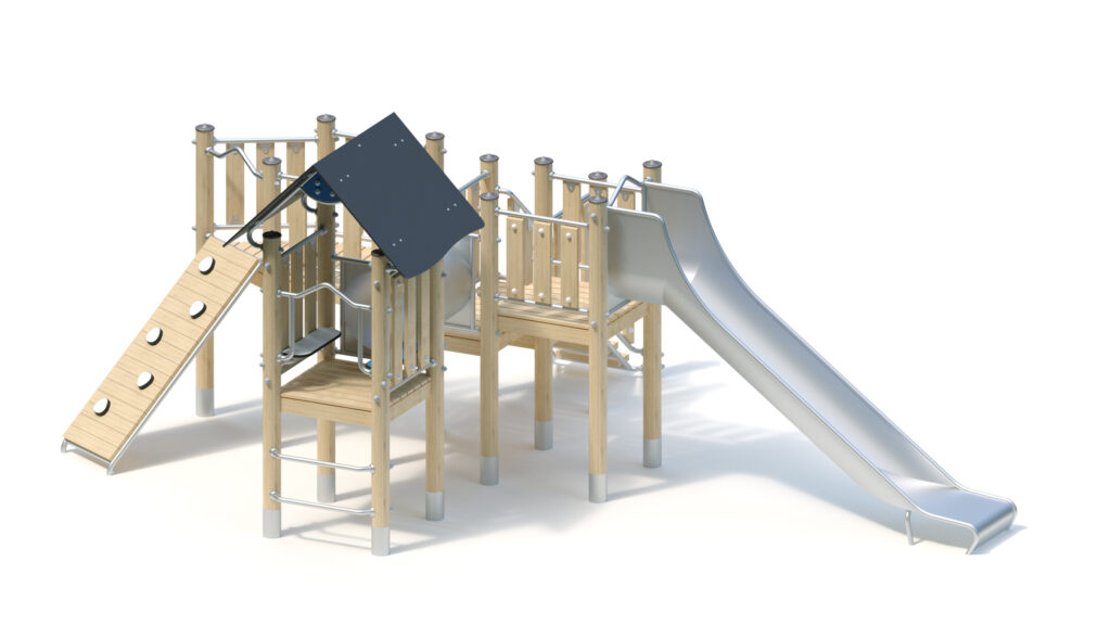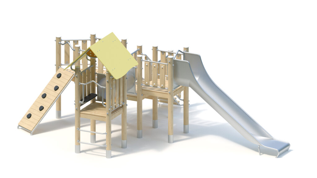 – climb up ramp from Robinia fitted with climbing elements made from HPL