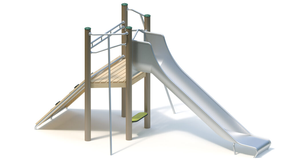 – Robinia climp up ramp with attached climbing elements made from HPL