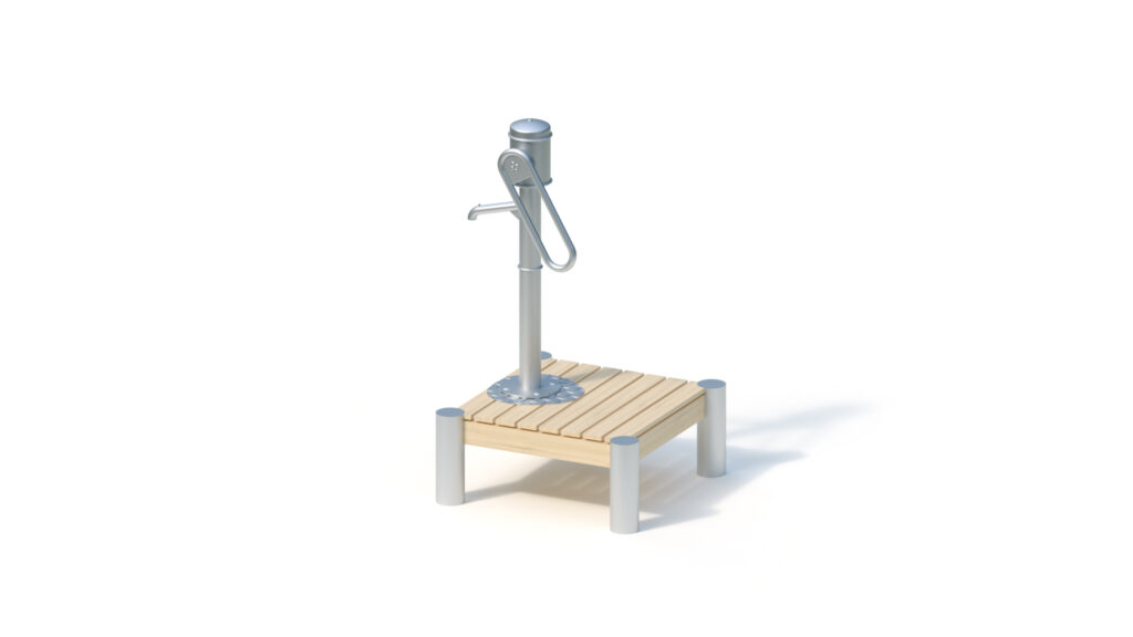 Verschweißte Edelstahlkonstruktion, gekapseltes Pumpengehäuse, Pumpenmechanik mit Wälz- und Gleitlagerung, oberes Pumpengehäuse mit Schwengel muss z.B. während der Frostperiode entfernt werden. Verschlussdeckel („Überwinterungsplatte“) für das verbleibende Pumpenunterteil wird mitgeliefert.