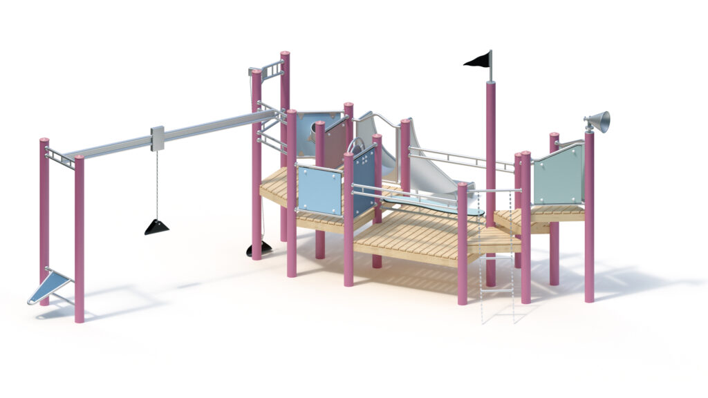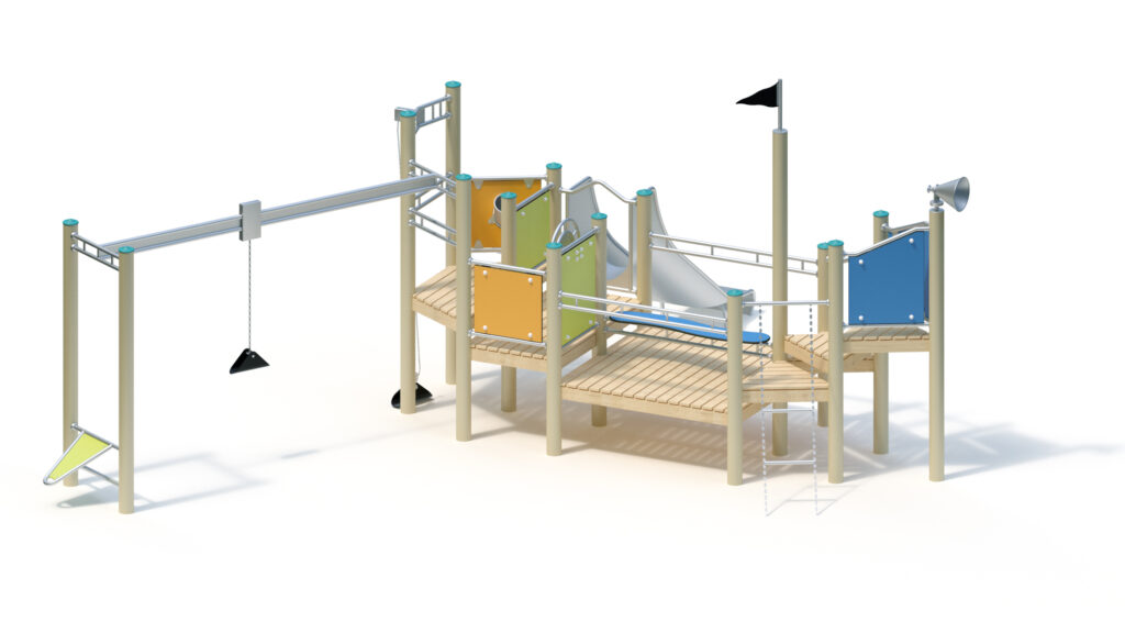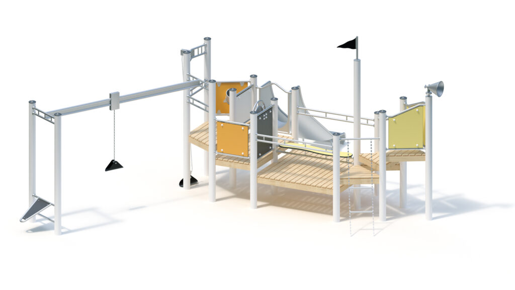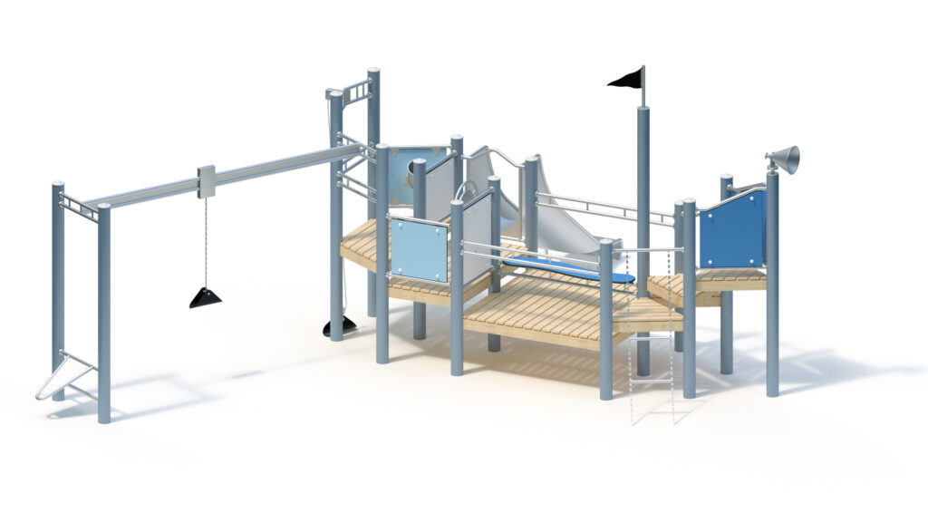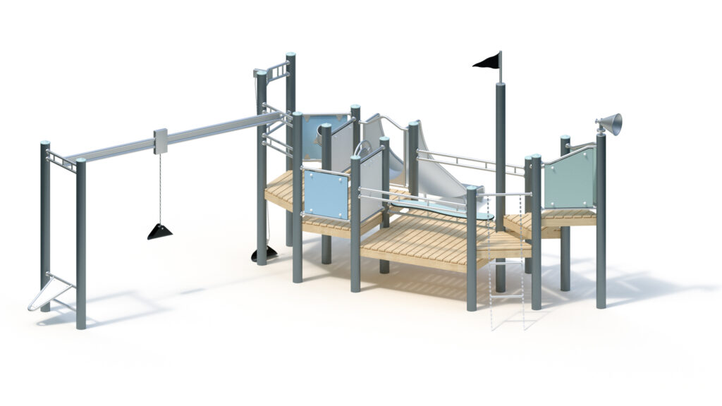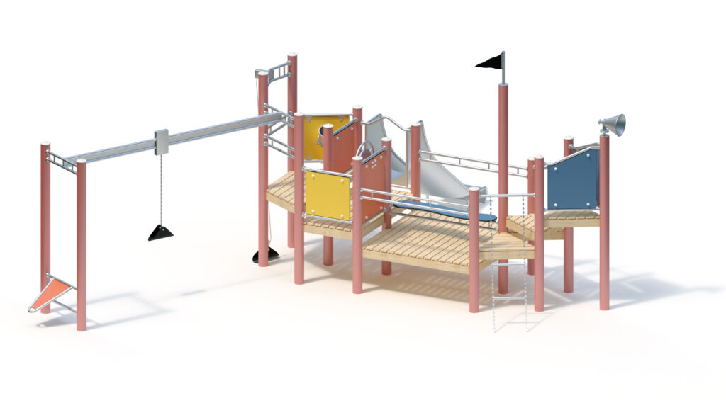 – revolving steering wheel on infill panel from highly weather-resistant coloured HPL, fastening between stainless steel tubes Ø 33,7 x 2 mm