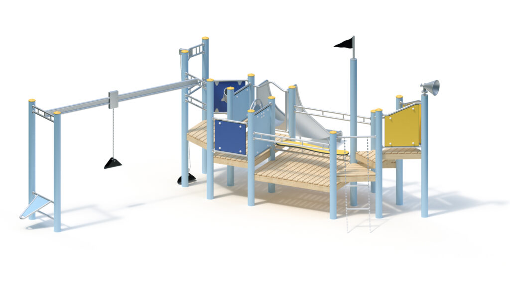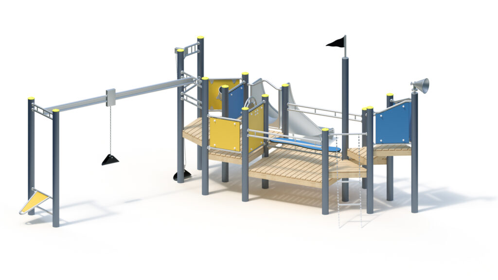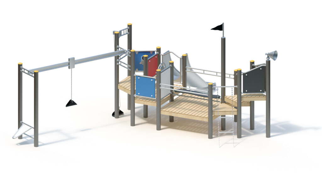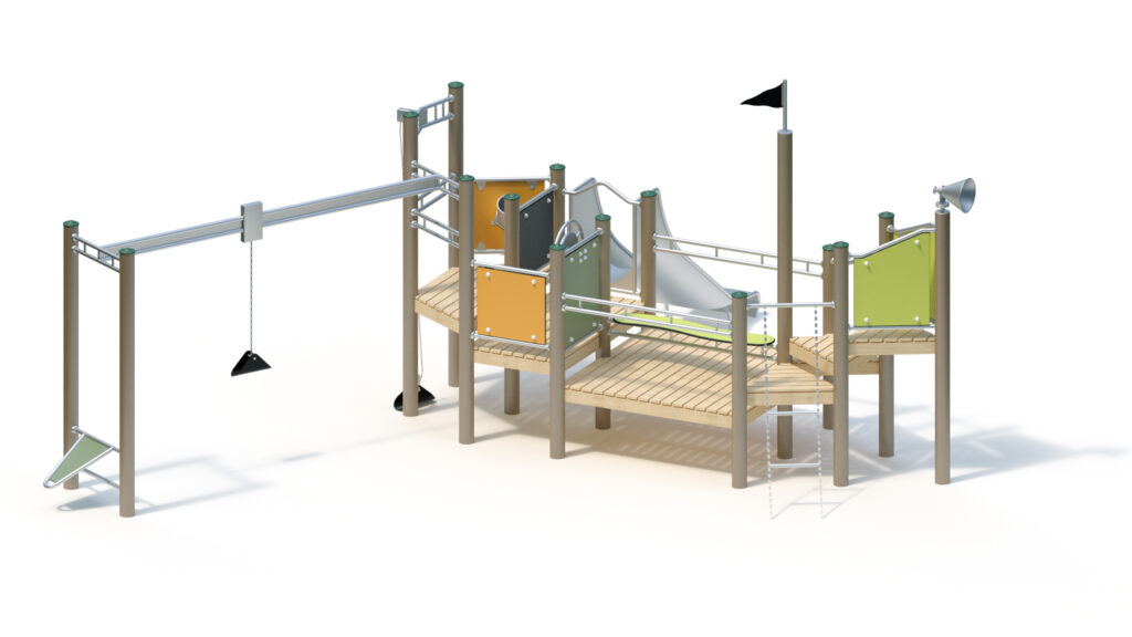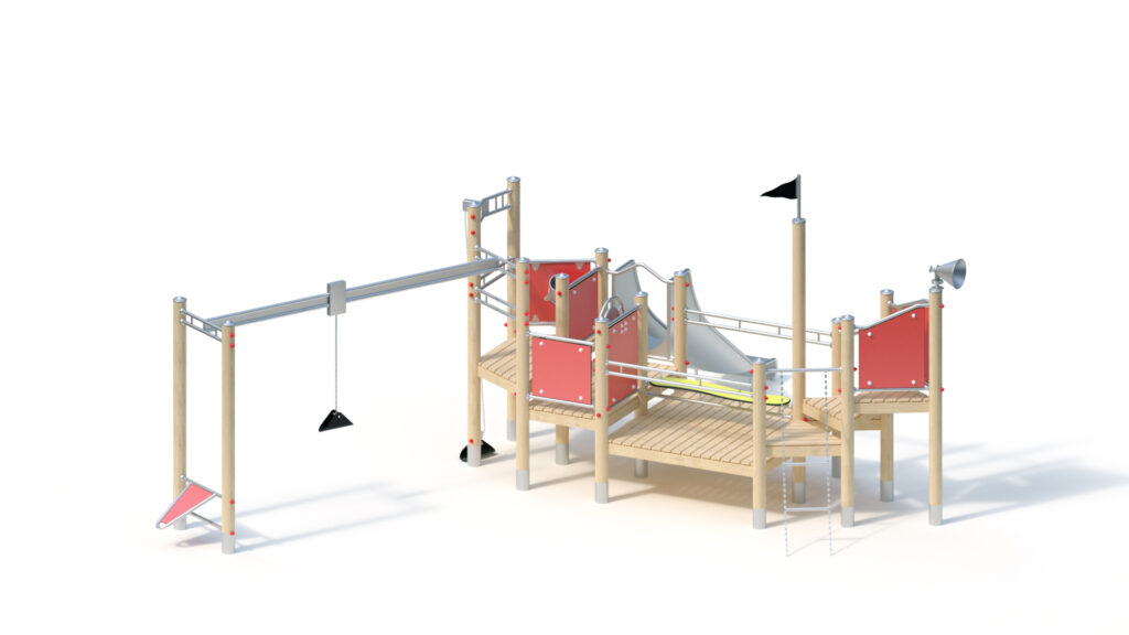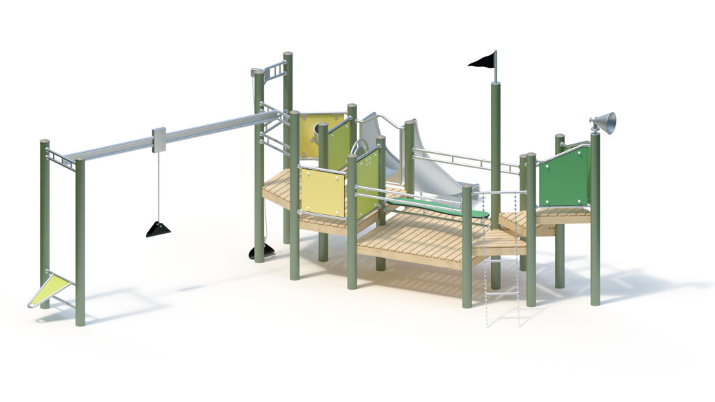 – revolving steering wheel on infill panel from highly weather-resistant coloured HPL, fastening between stainless steel tubes Ø 33,7 x 2 mm
