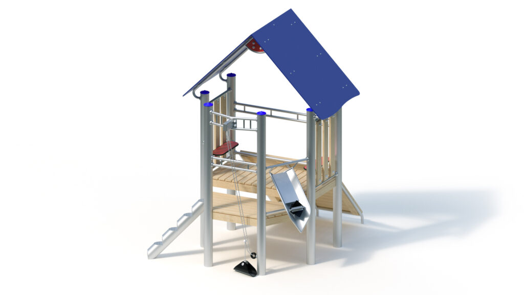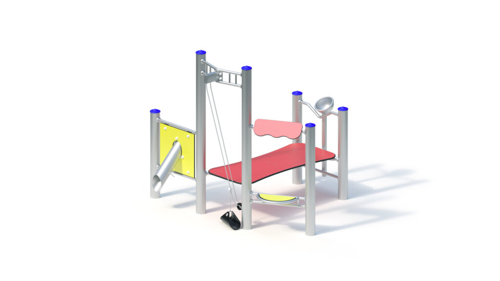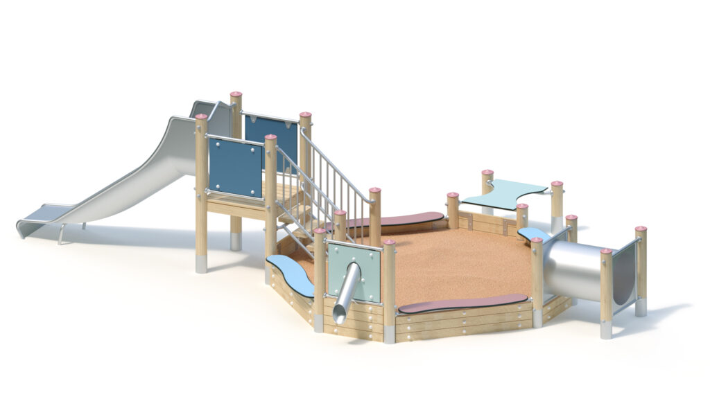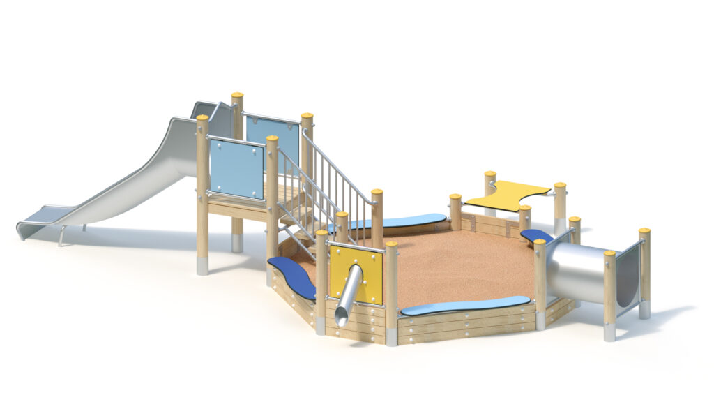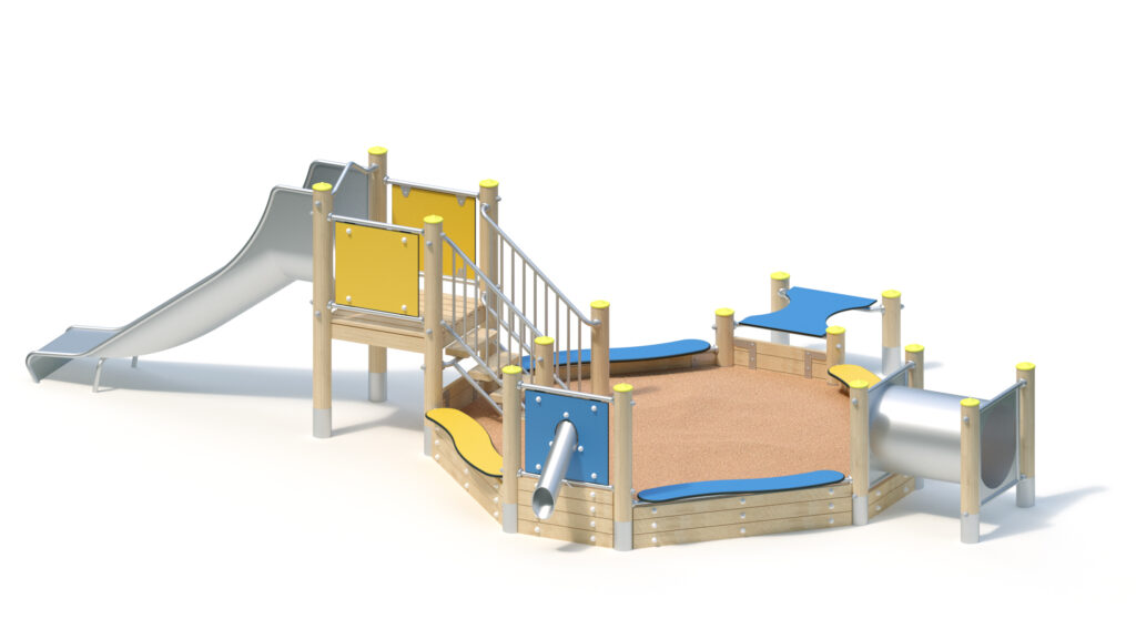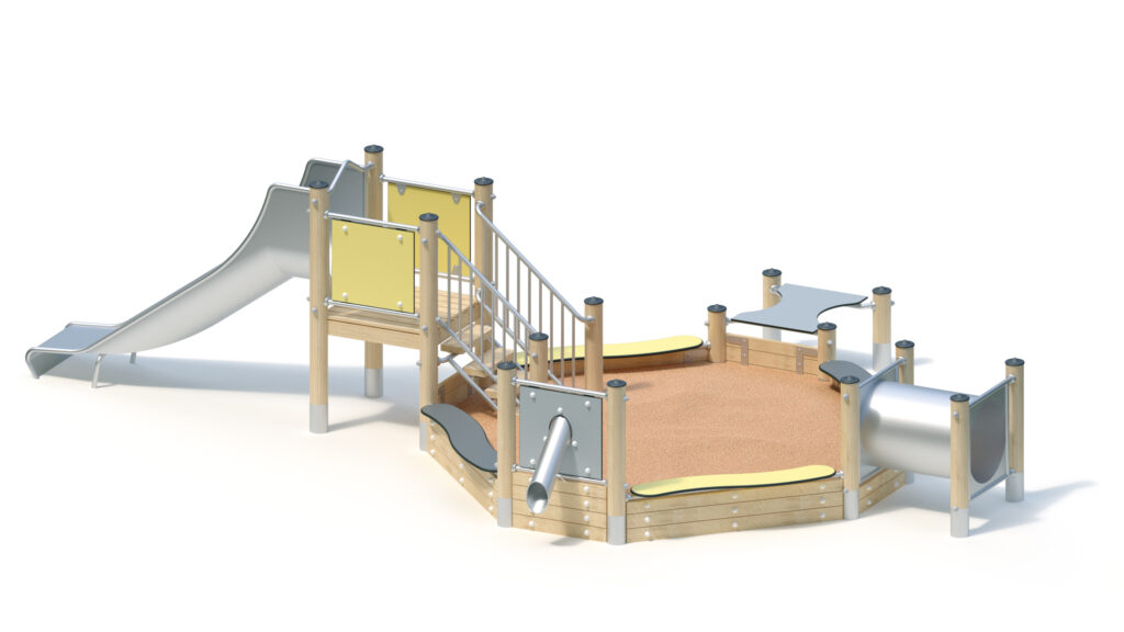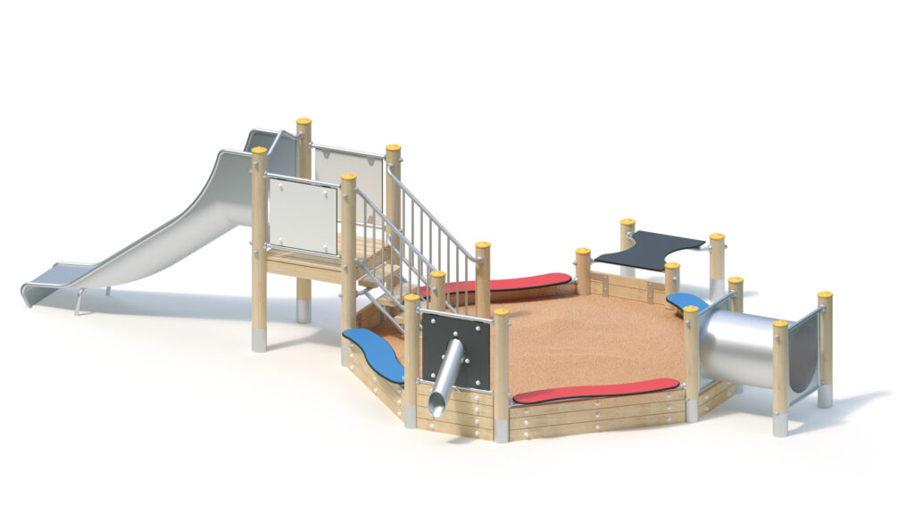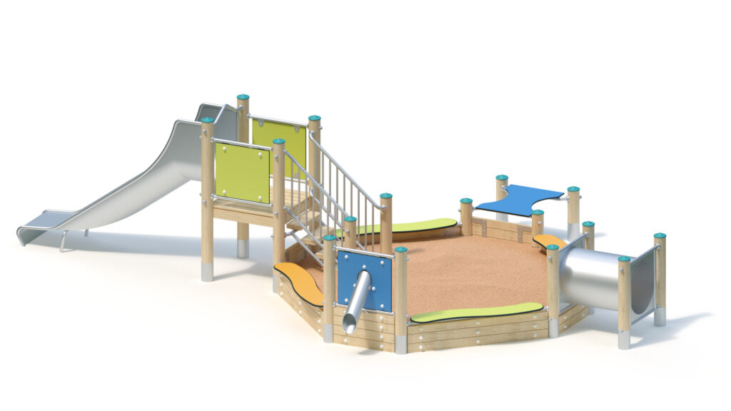 – Play-and seat plate made of coloured, highly weather-resistant HPL laminated board, 20 mm