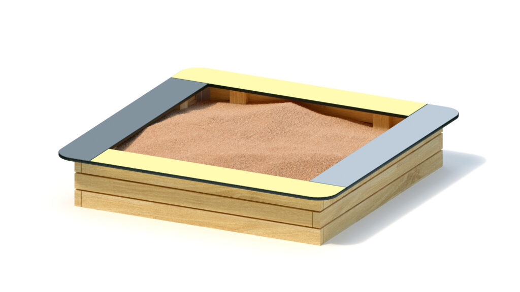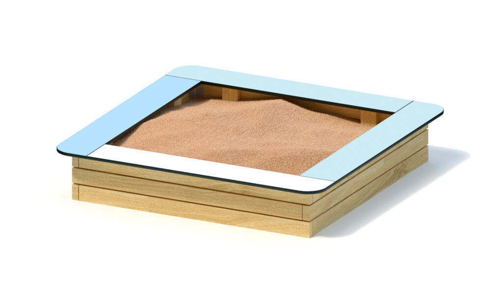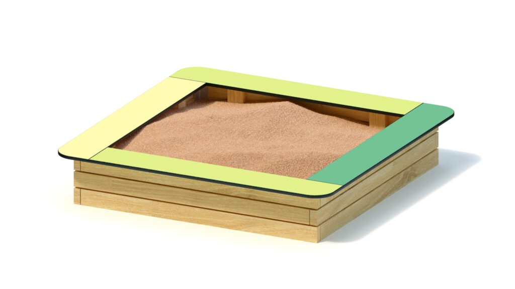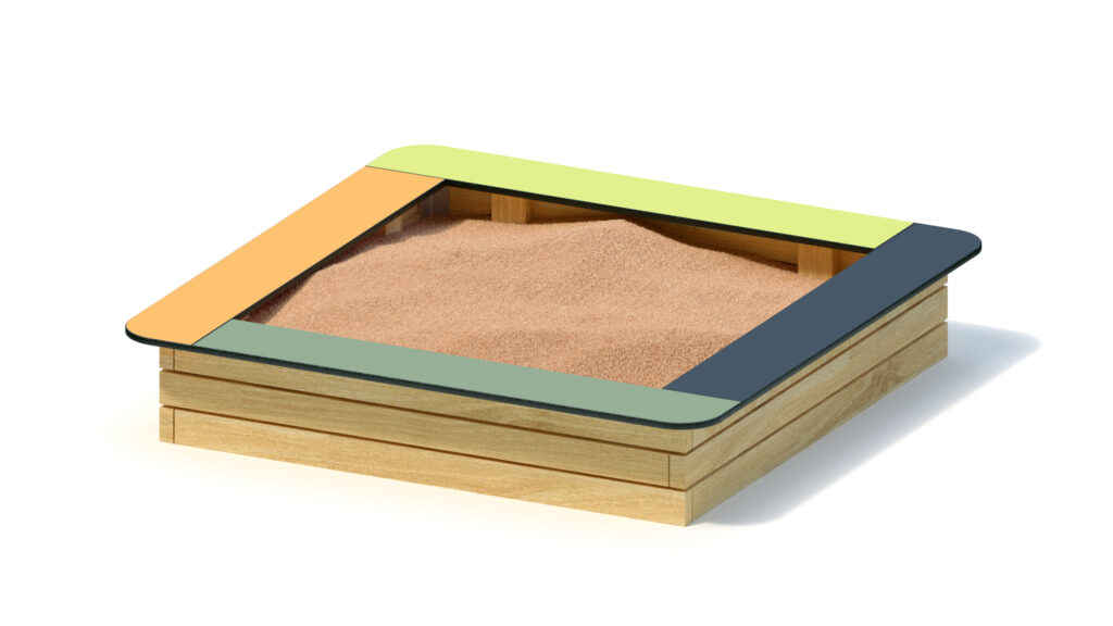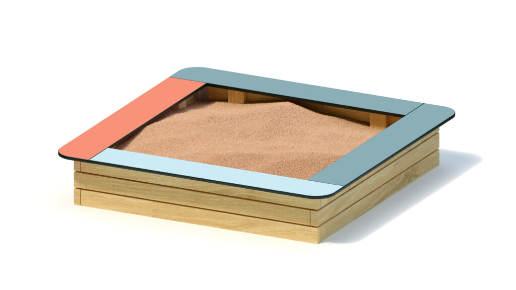 sand enclosures from Robinia 45 x 100 mm, planed, chamfered and free from decay, plates from highly weather-resistant HPL, 20 mm thickness