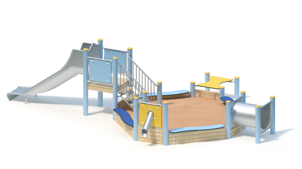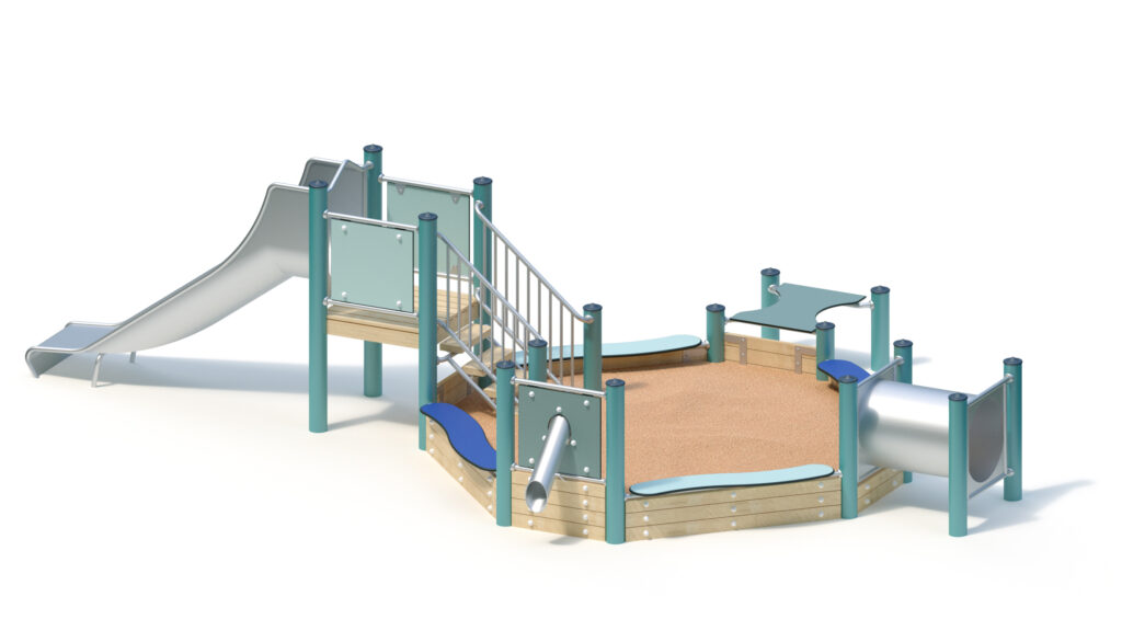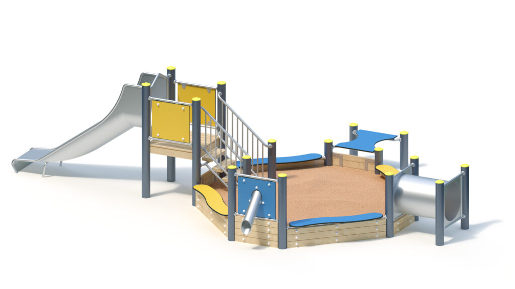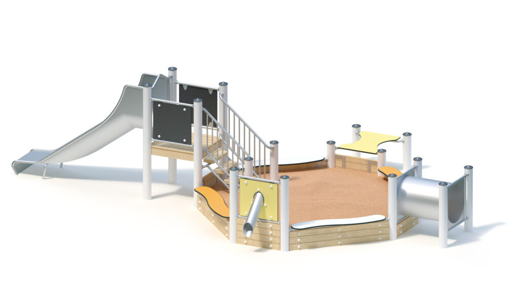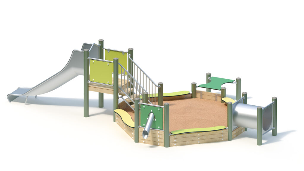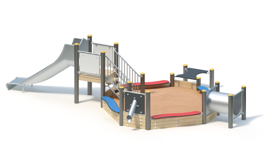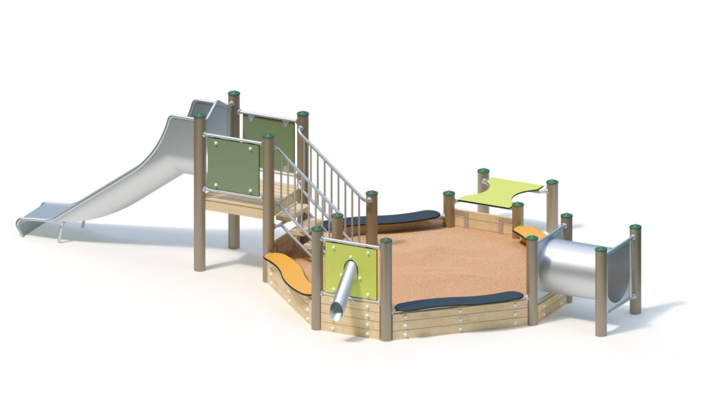 – Spiel- und Sitzplatte aus farbiger, höchst witterungsbeständiger HPL-Schichtstoffplatte, 20 mm