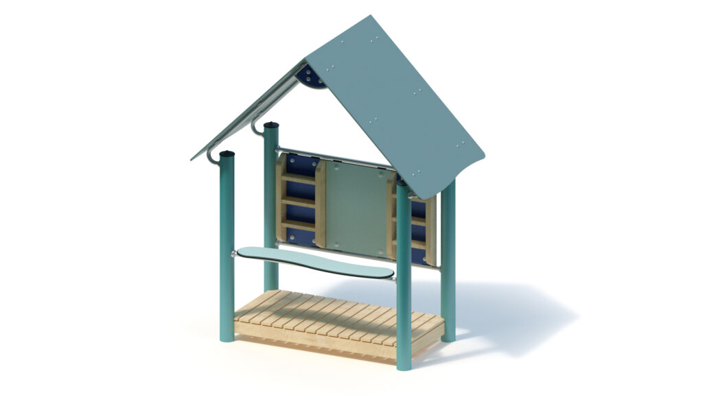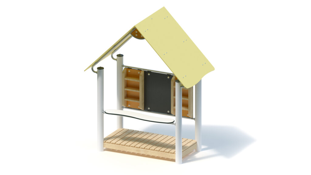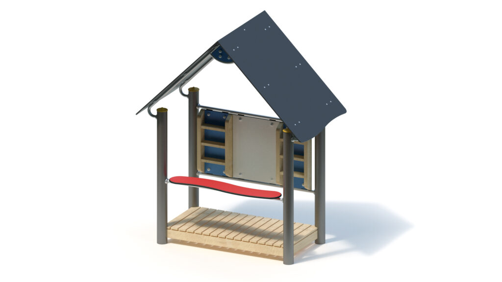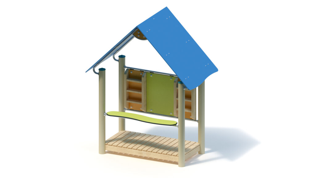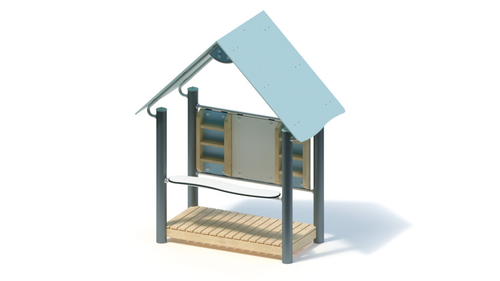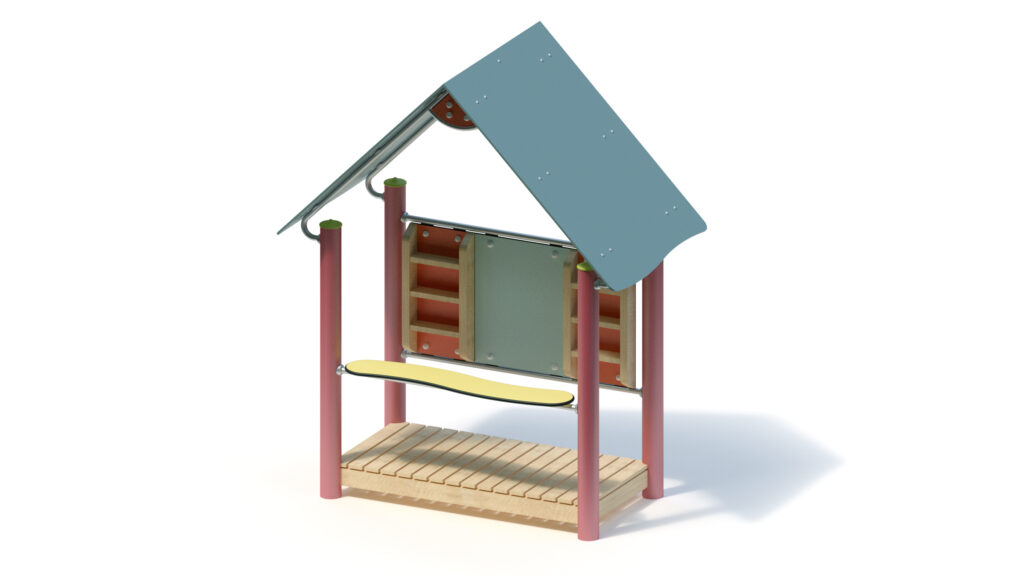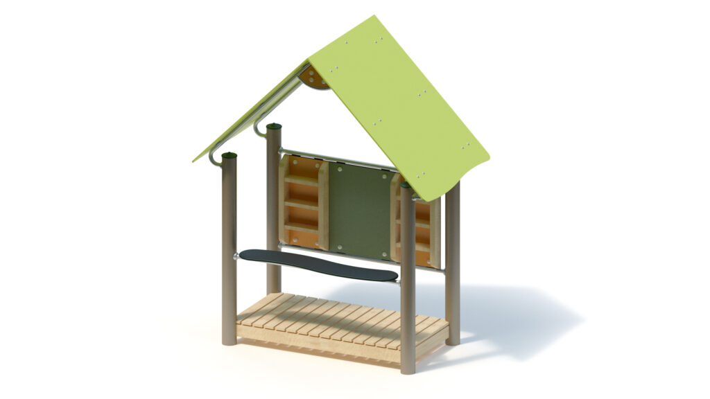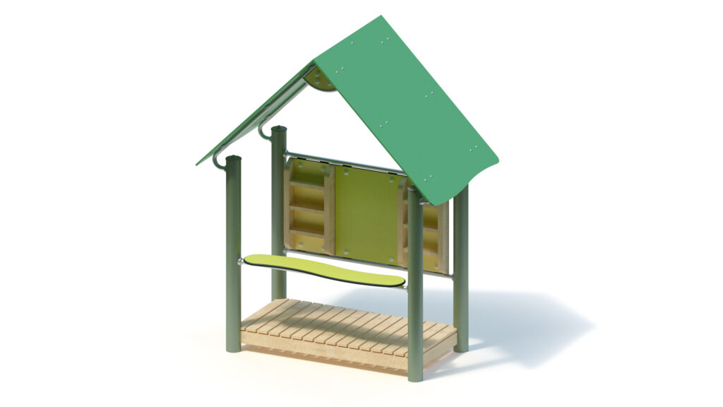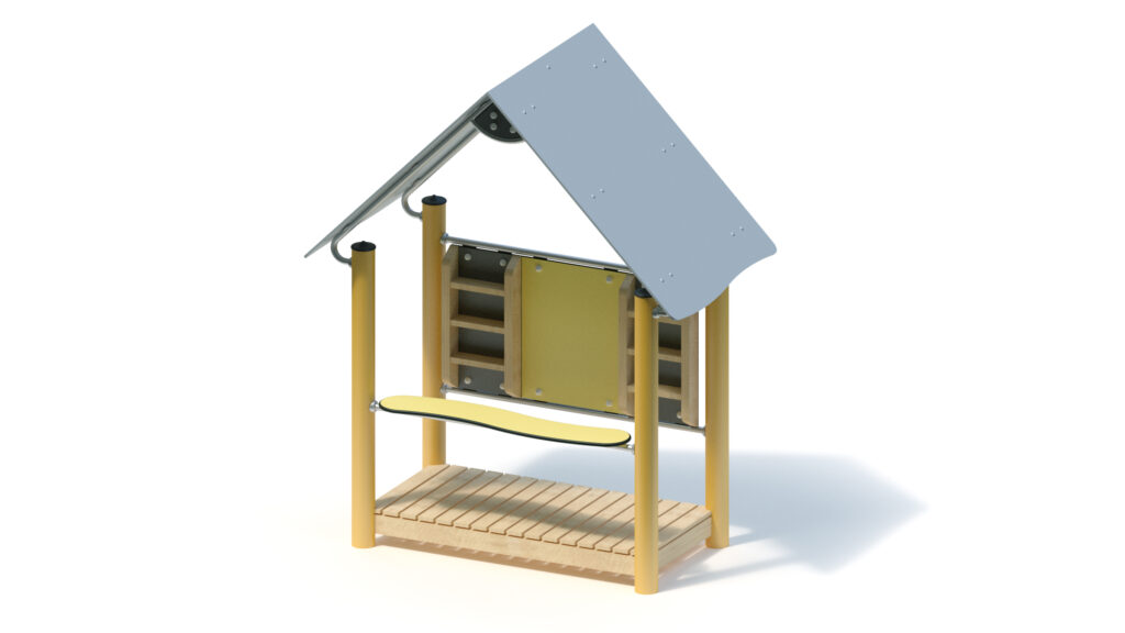 – saddle roof, 45° inclination, made from highly weather-resistant coloured HPL panels, 13 mm thickness, fastening to stainless steel frame Ø 33,7 x 2 mm