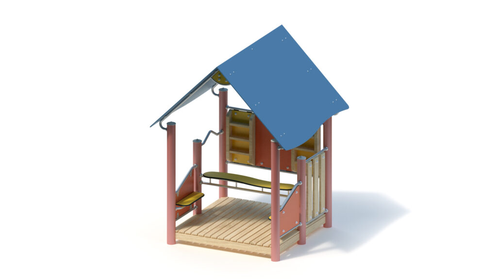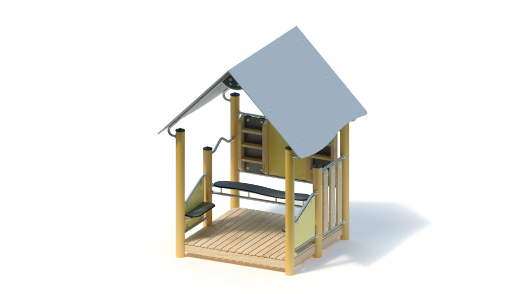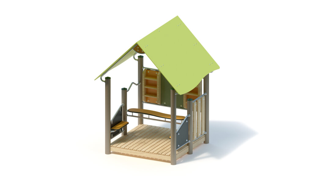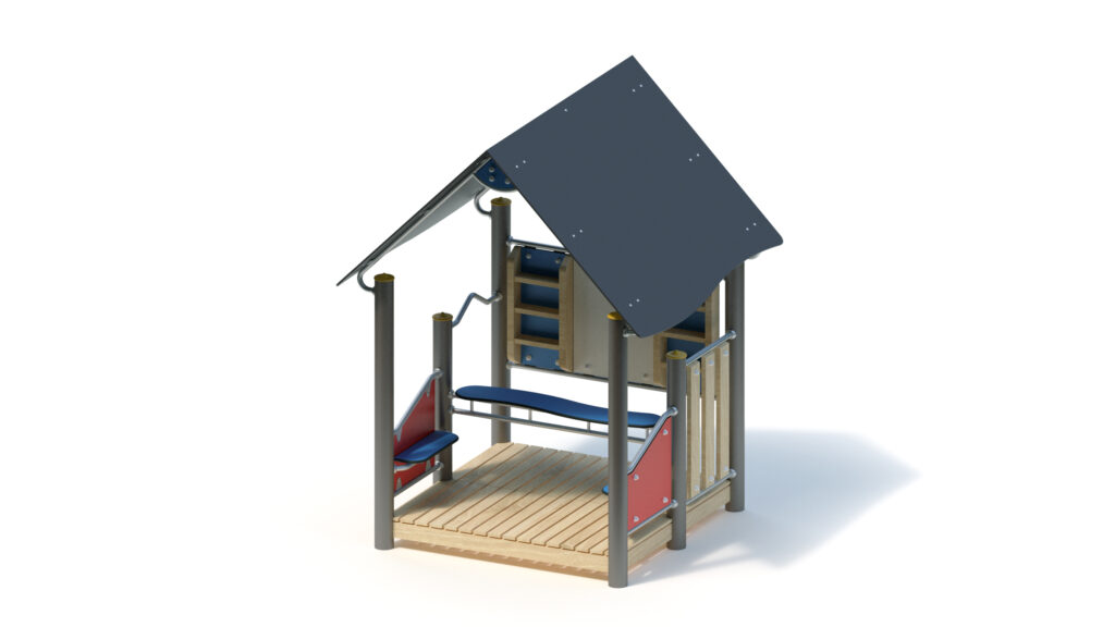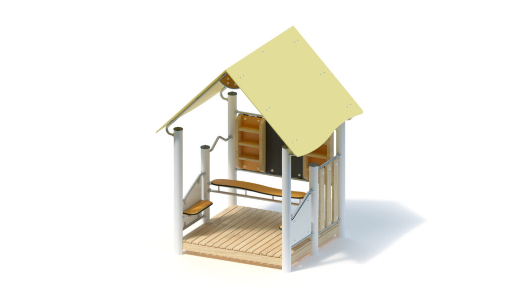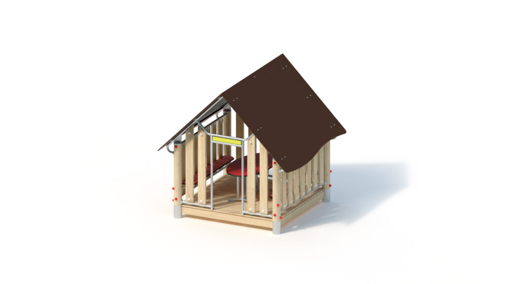 – gable roof, 45° inclination, made from highly weather-resistant coloured HPL panels, 13 mm thickness, fastening to stainless steel frame Ø 33,7 x 2 mm