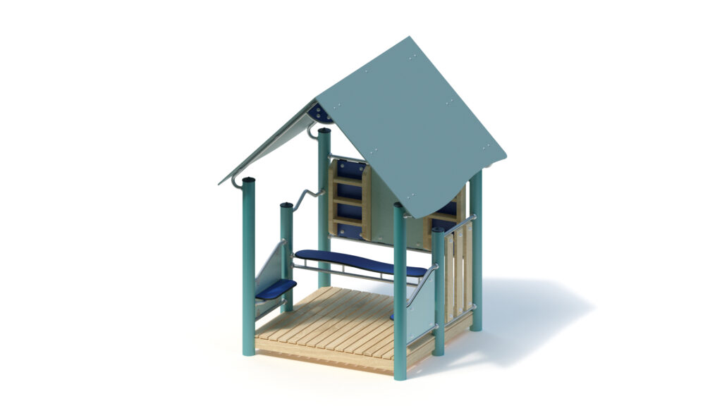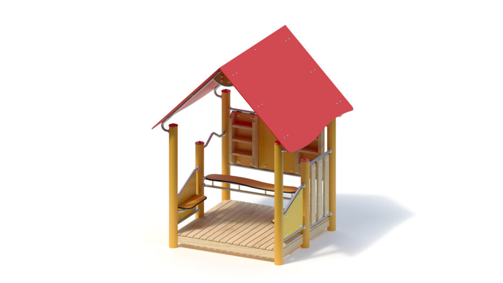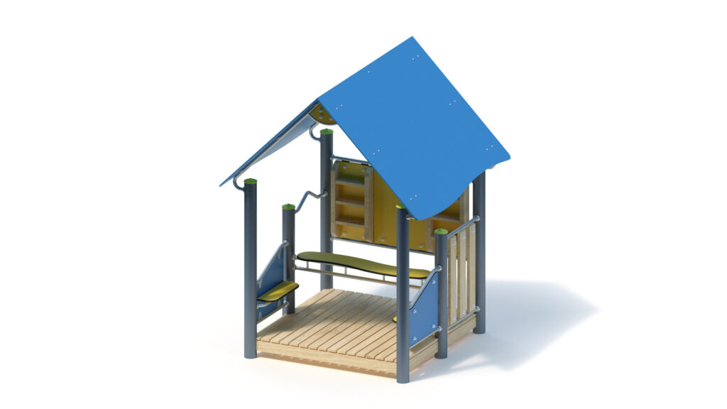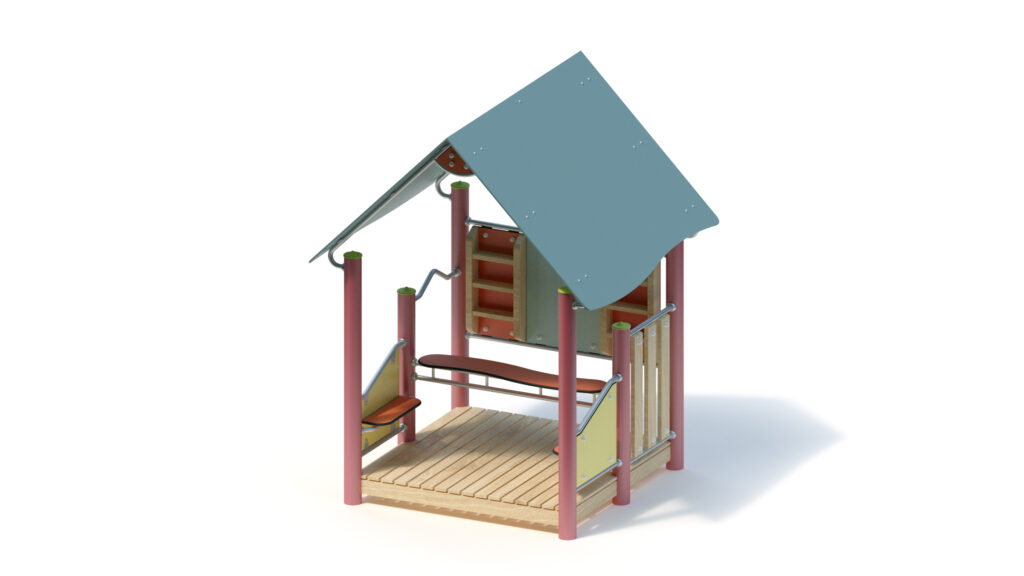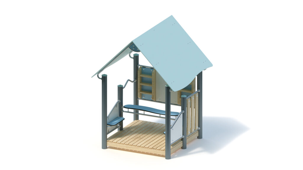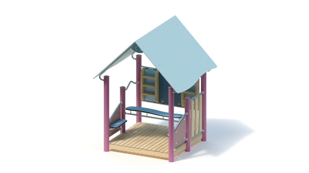 – gable roof, 45° inclination, made from highly weather-resistant coloured HPL panels, 13 mm thickness, fastening to stainless steel frame Ø 33,7 x 2 mm