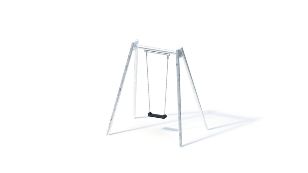 – Swing support posts from hot-dip galvanised steel Ø 76,1 mm, wall thickness 2,9 mm; attachment to swing crossbeam by means of connector plates
