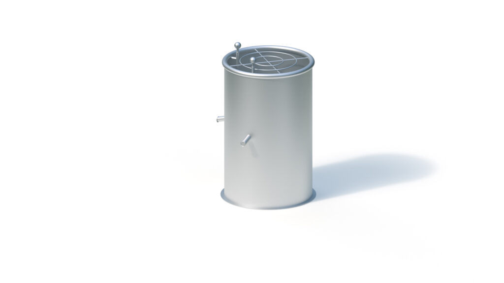Welded structure made of stainless steel, with facility to attach footstep bearing of water spiral to foundation. Water supply to be connected directly or e.g. through a water trough above the tube ferrule. Thickness of sheet steel: