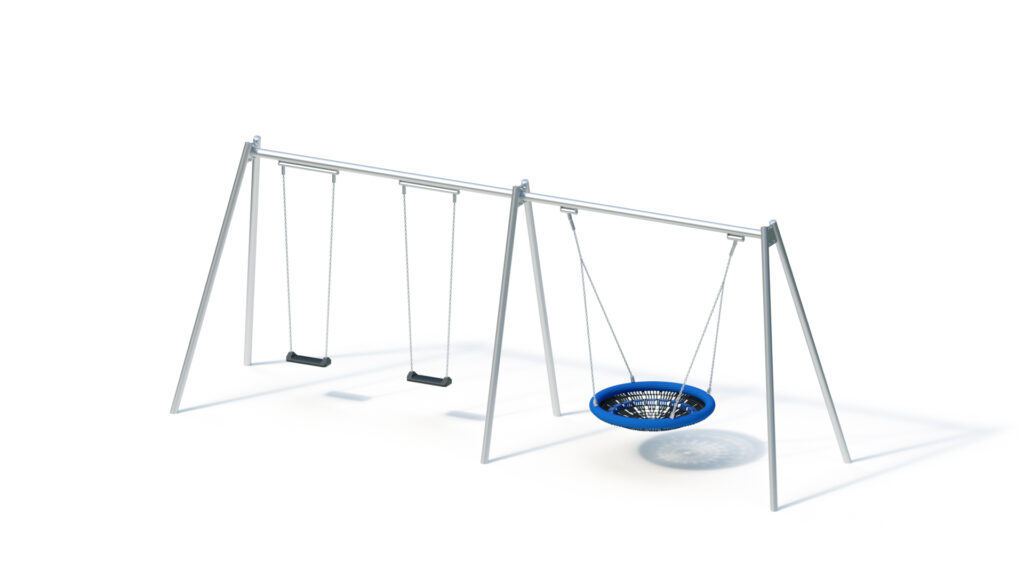 – Swing support posts from stainless steel, material specification 1.4301 Ø 76,1 mm, wall thickness 2,9 mm; attachment to swing crossbeam by means of connector plates