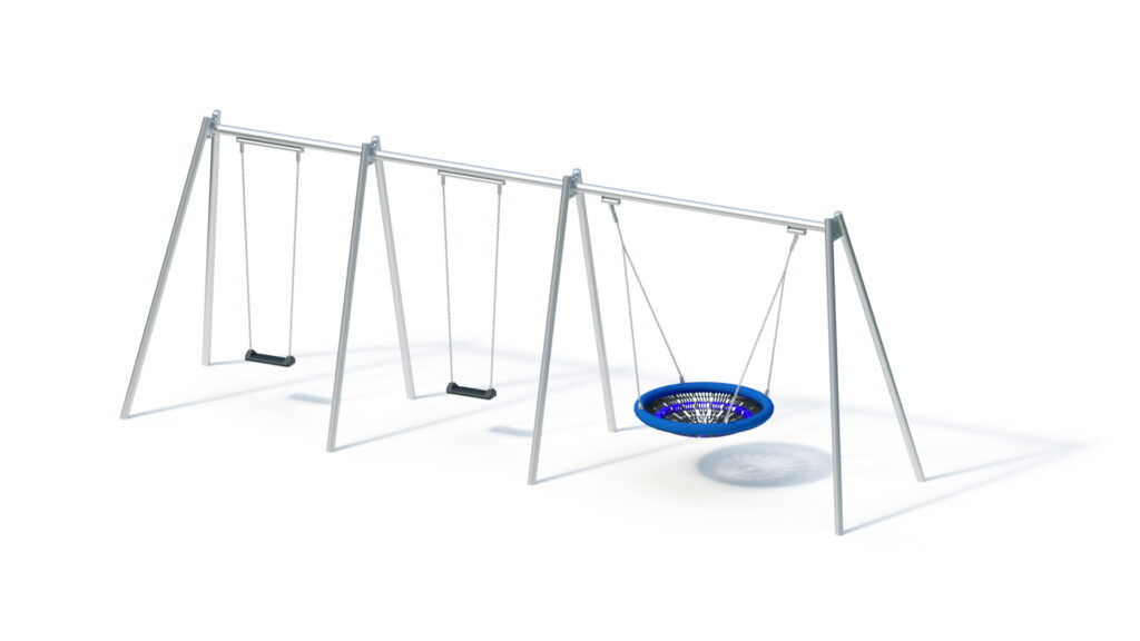 – Swing support posts from stainless steel, material specification 1.4301 Ø 76,1 mm, wall thickness 2,9 mm; attachment to swing crossbeam by means of connector plates