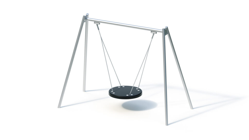 – safety swing seat made from rubber with stabilising Aluminium insert, gapless single-point chain suspension
