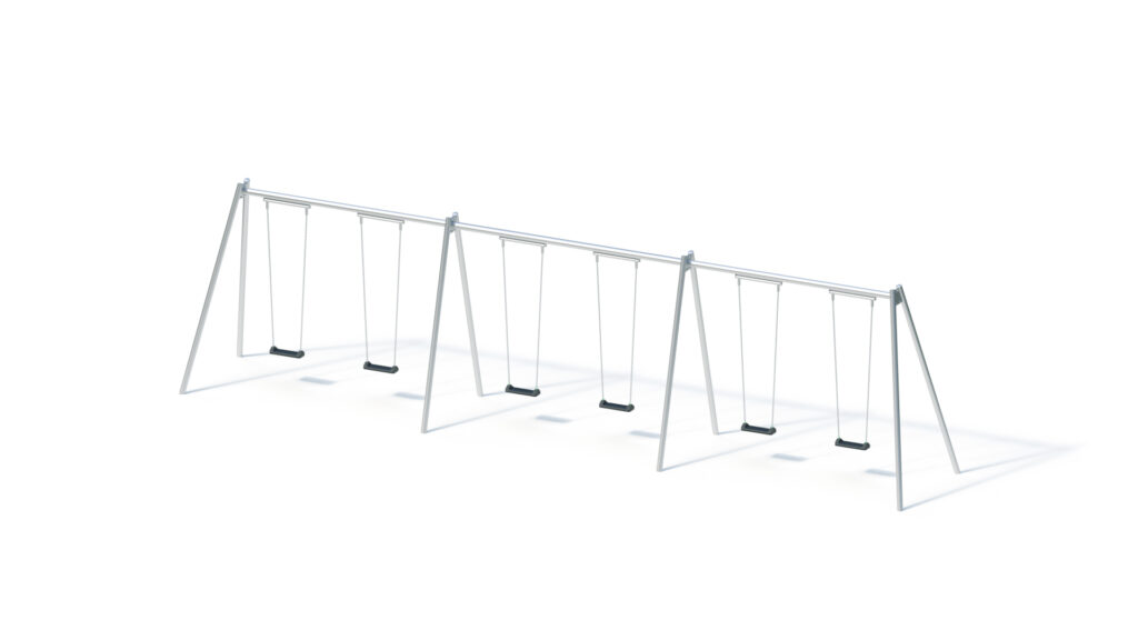 – Schaukelträger aus Edelstahl 1.4301, Ø 88,9 mm, Wandstärke 3,2 mm; Anbindung an Schaukelstützen über Anschlussplatten