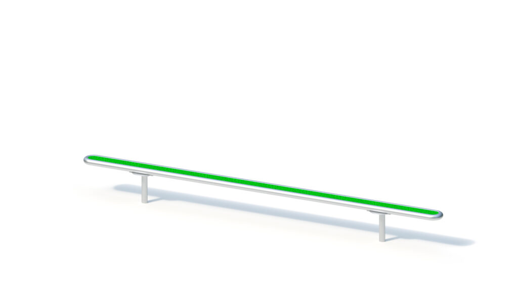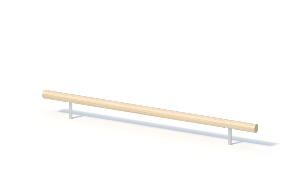 – trestle beams from laminated Robinia timber Ø 120 mm with cylindrical milling. End-grain surfaces are covered by non-detachable protective stainless steel caps. Stainless steel tubular pedestal for concrete-cast foundation and for fixed mounting to round Robinia posts, Ø 120 mm, below playing surface.