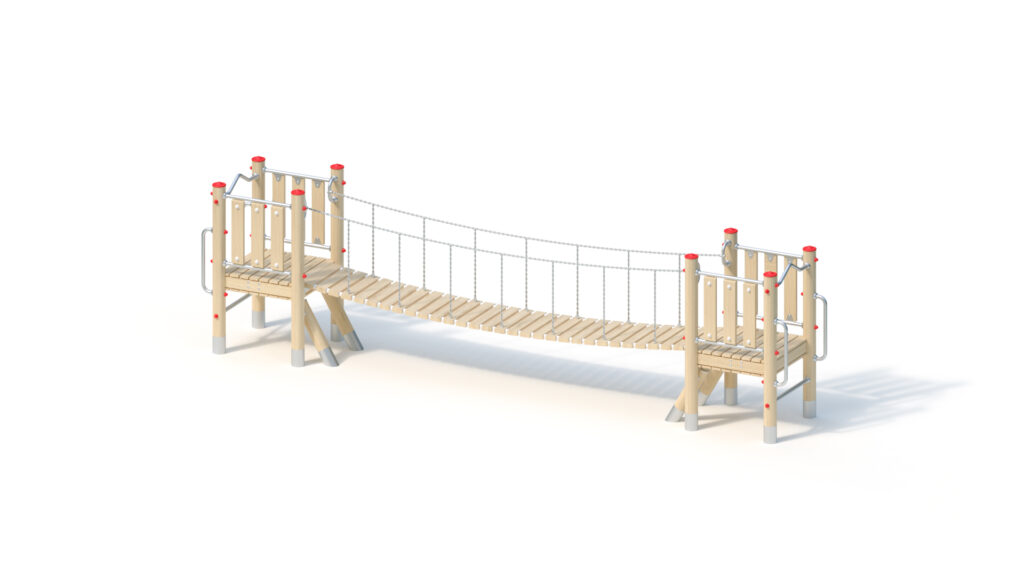 – sloping tottery stairs suspended from fine stainless steel chains fixed to tandem guardrails