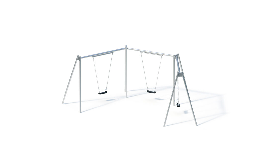 – Swing support posts from hot-dip galvanised steel Ø 76,1 mm, wall thickness 2,9 mm; attachment to swing crossbeam by means of connector plates