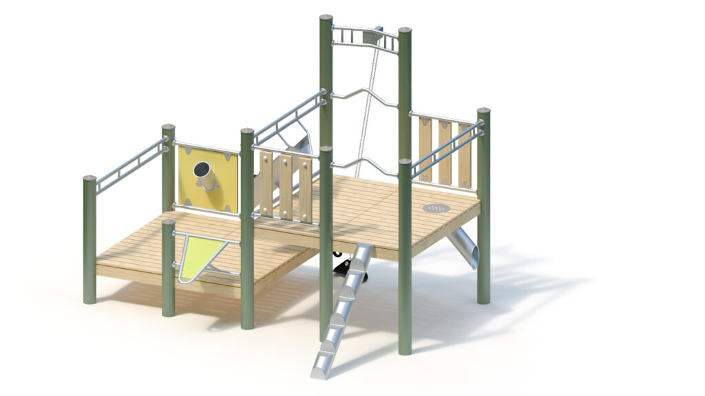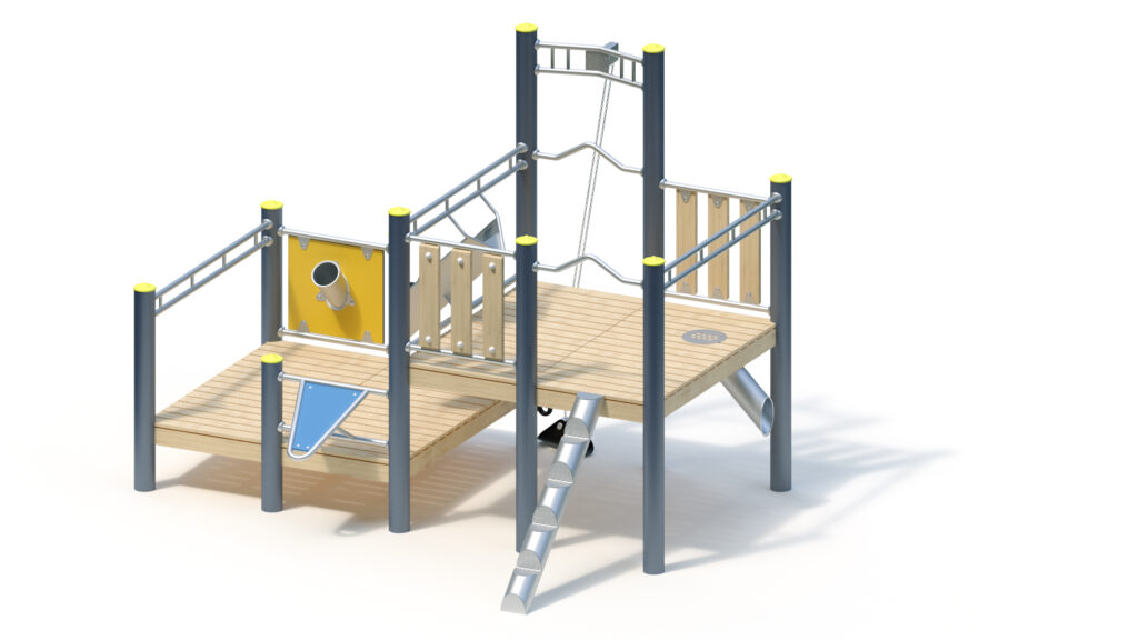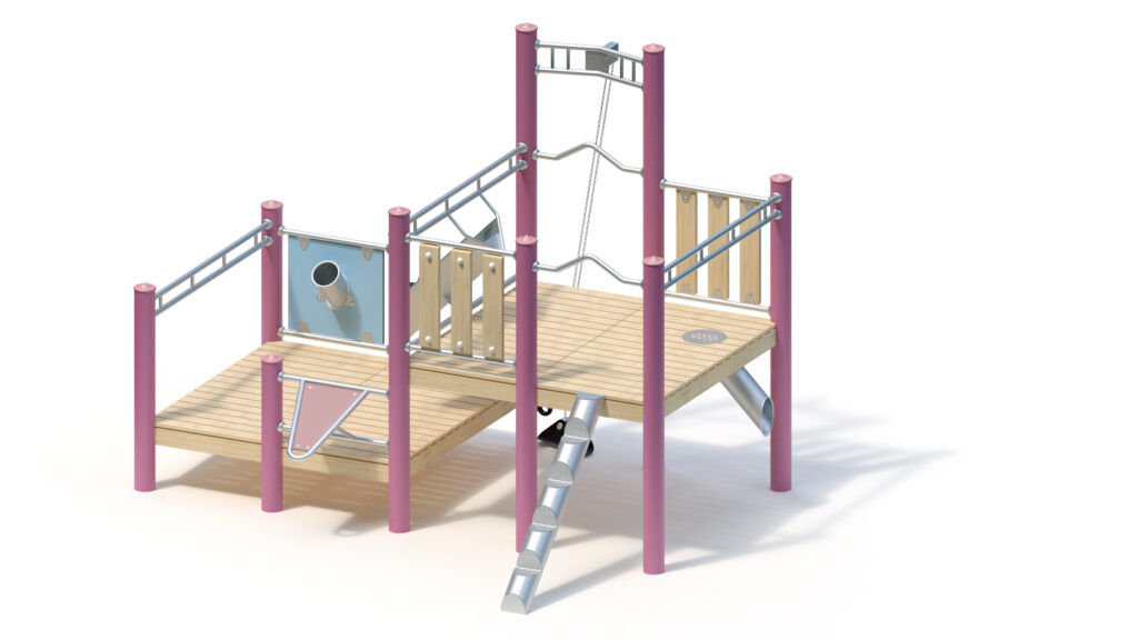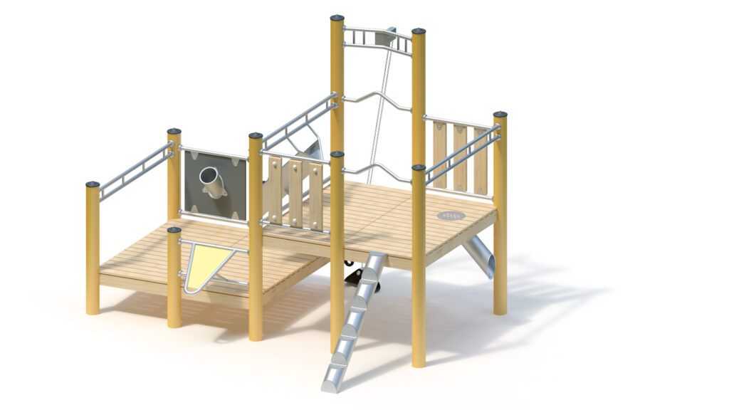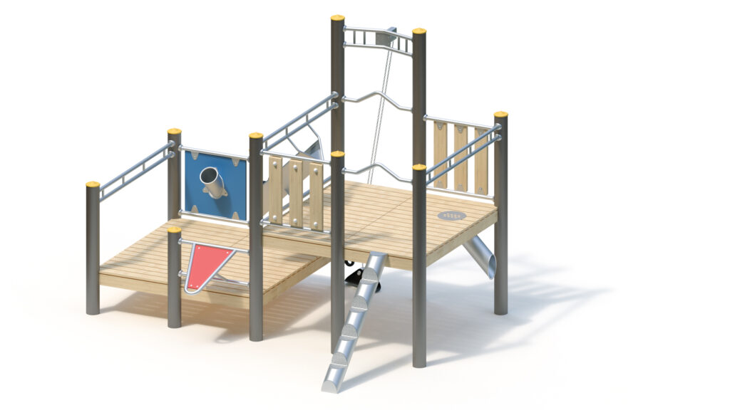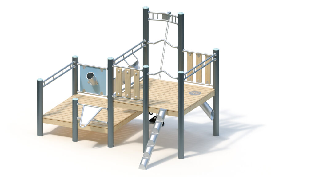 – Sandrutsche aus Edelstahlrohr mit HPL-Schichtstoffplatte