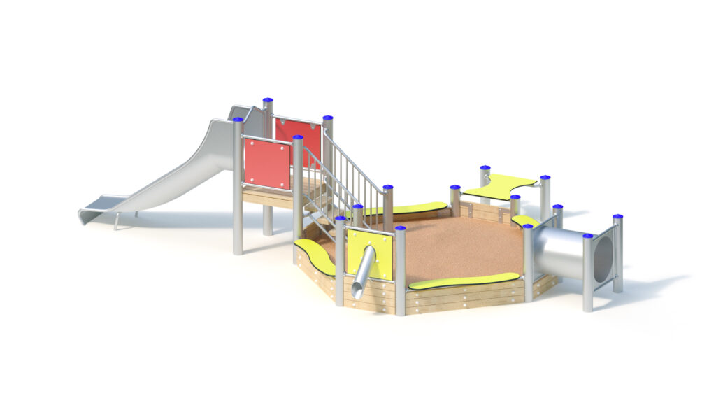 – Sandrutsche aus Edelstahlrohr mit HPL-Schichtstoffplatte