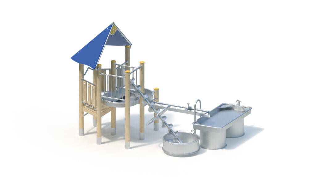 – half a tent roof, 45° inclination, from highly weather-resistant blue HPL panels, 13 mm thickness, fastening to stainless steel frame Ø 33,7 x 2 mm