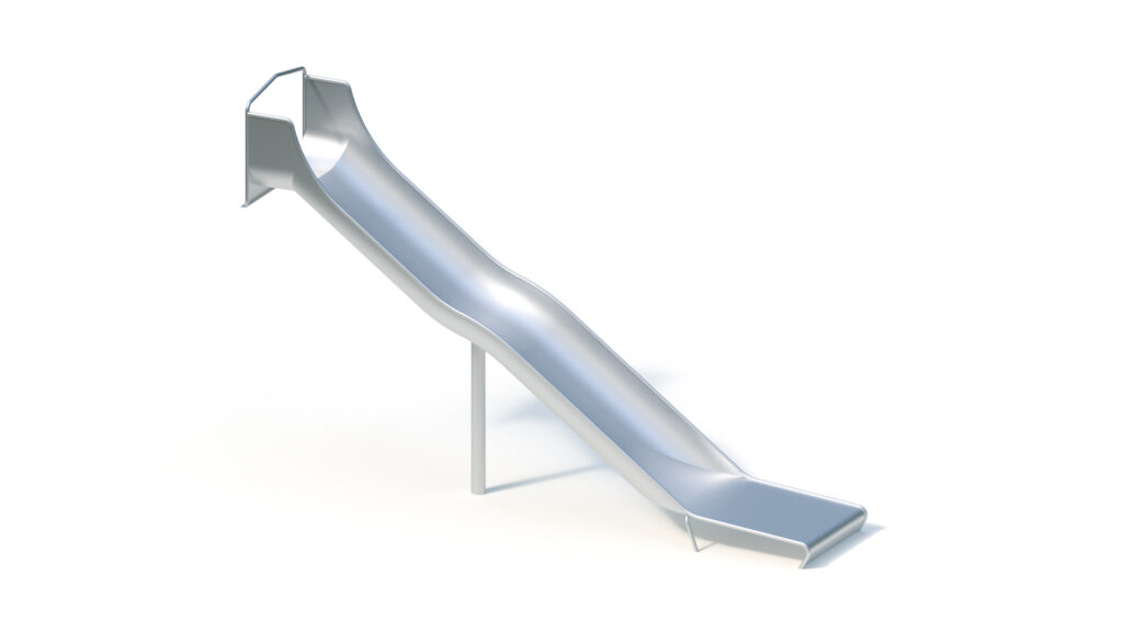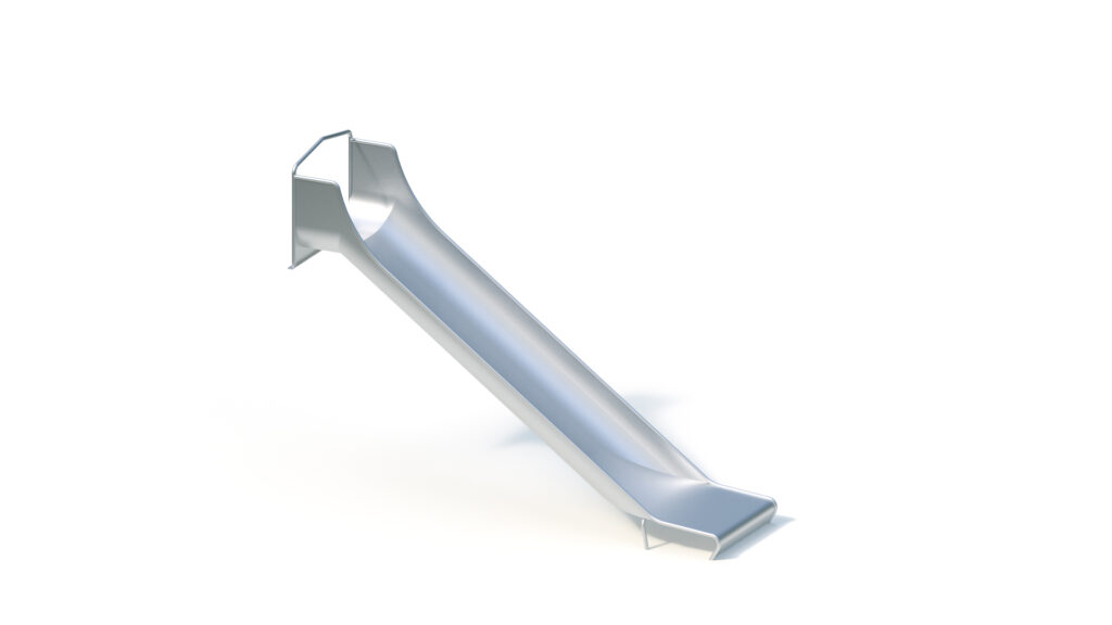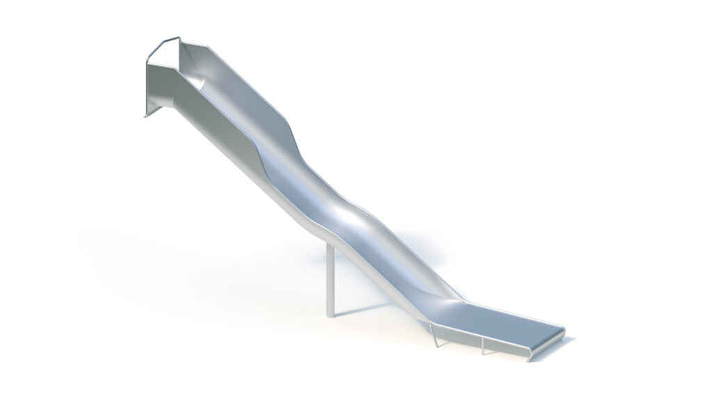 The waved section of the slide is equipped with a flange for support post fastening, both made from stainless steel.
